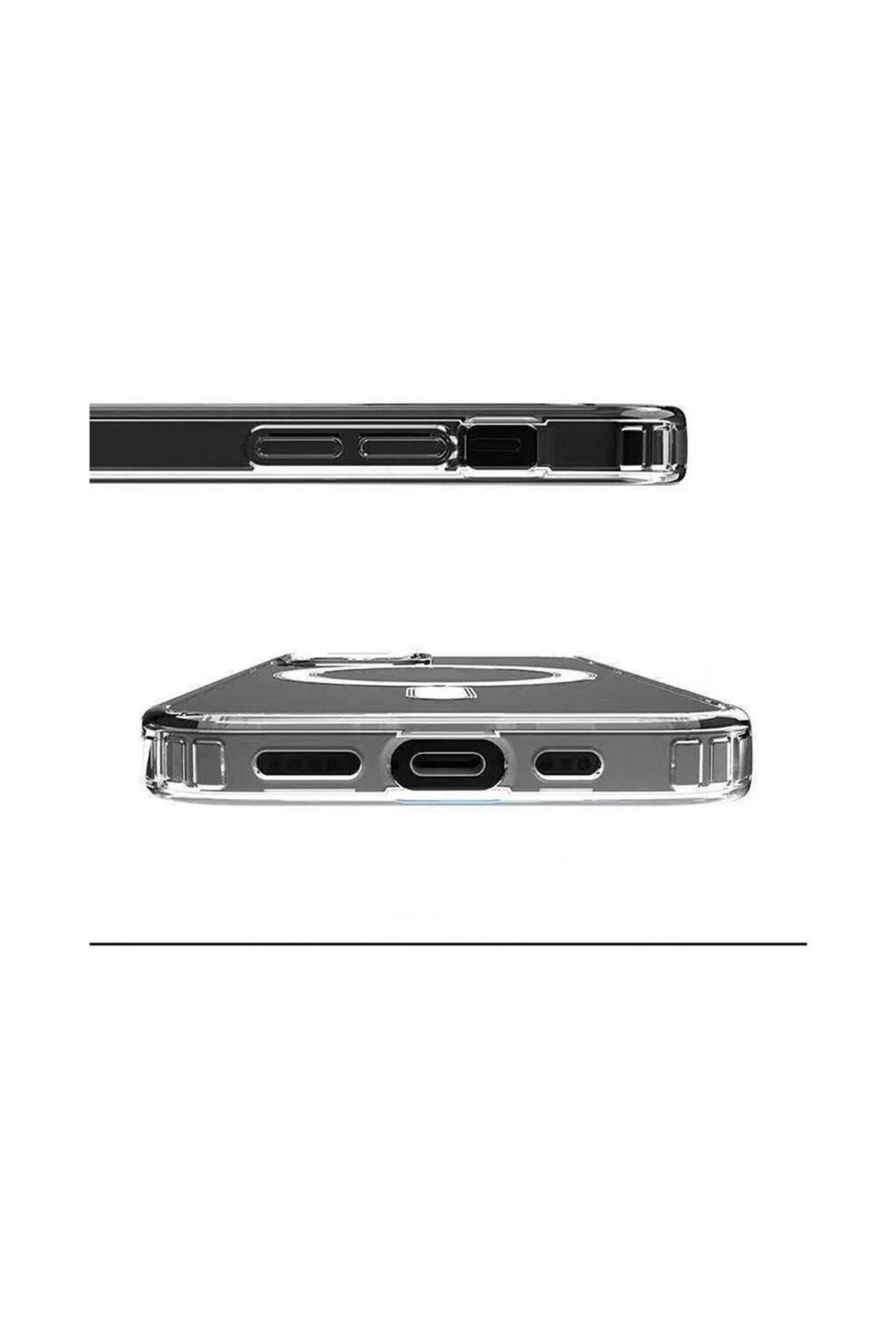 Apple Iphone 14 Promax Kılıf Magsafe Wireless Şarj Destekli Şeffaf Kapak Magnetic Crystal Case
