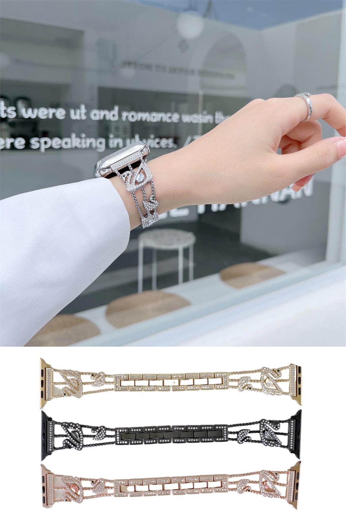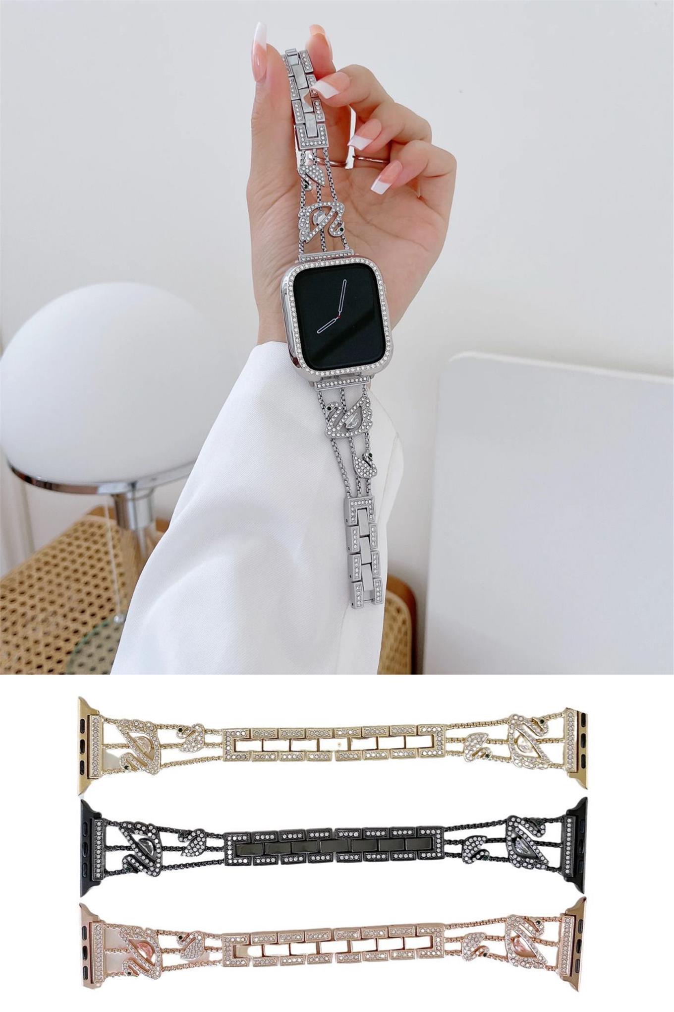 Apple Watch 2 3 4 5 6 7 8 Se 42 44 45 49 Mm Uyumlu Kuğu Taşlı Kordon