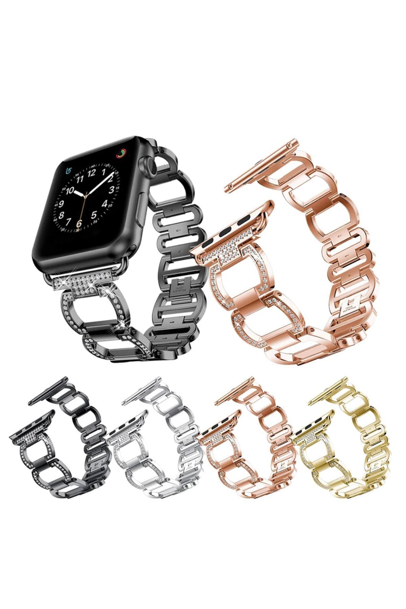 Apple Watch 2 3 4 5 6 7 8 Se 42 44 45 49 mm Uyumlu Lüks Çelik Paslanmaz Elmas Detaylı Kordon
