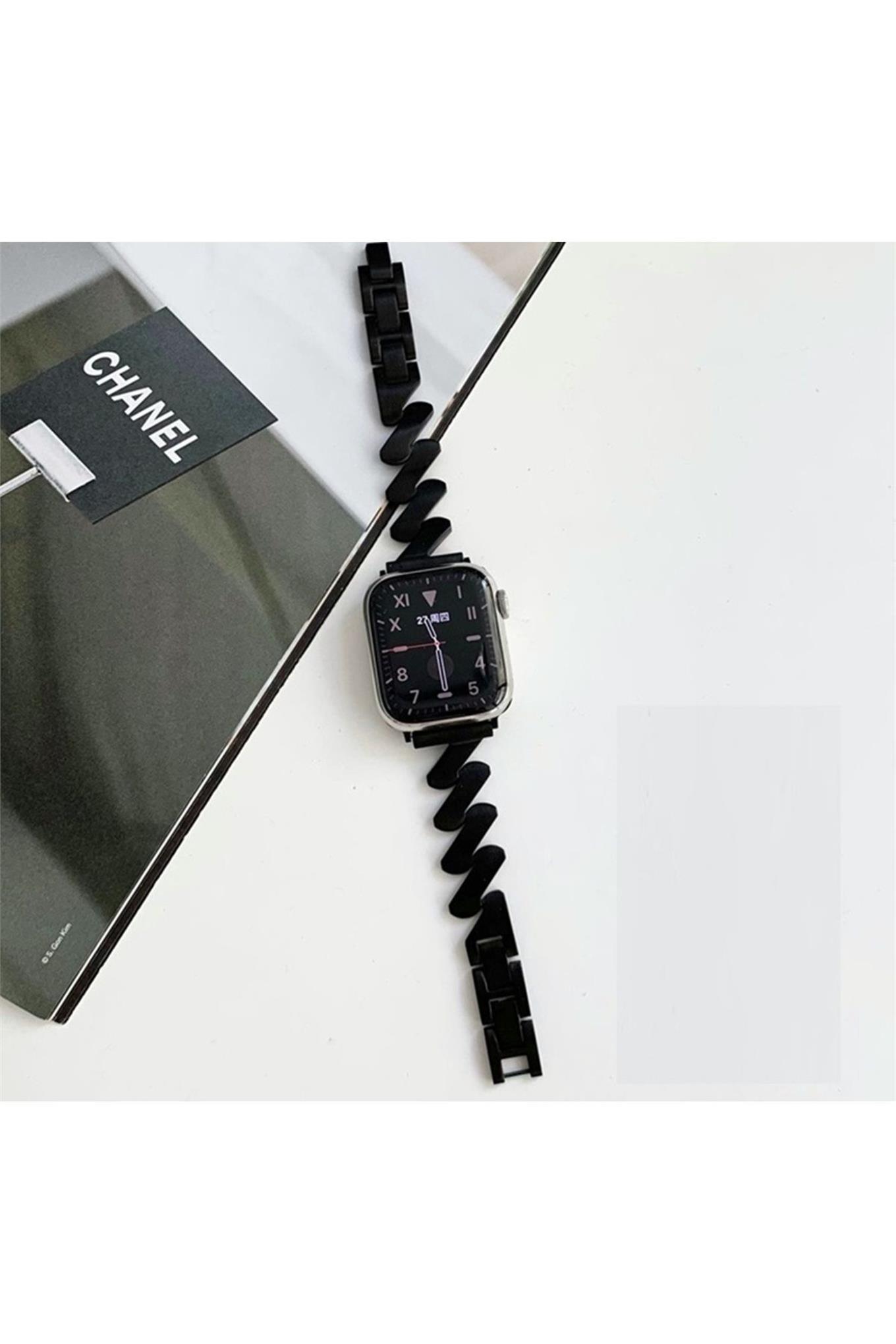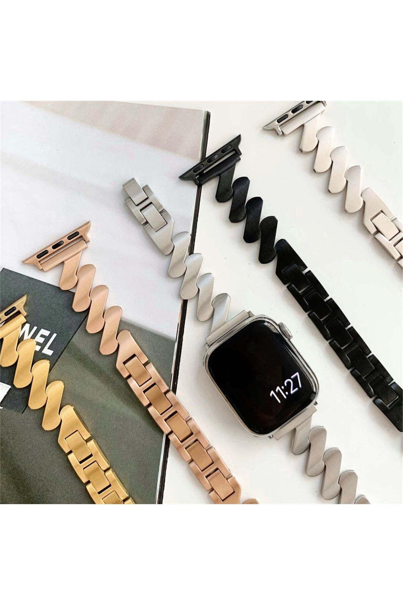 Apple Watch 2/3/4/5/6/7/8/9/10 se38-40-41mm Uyumlu Metal Paslanmaz Çelik Zigzag