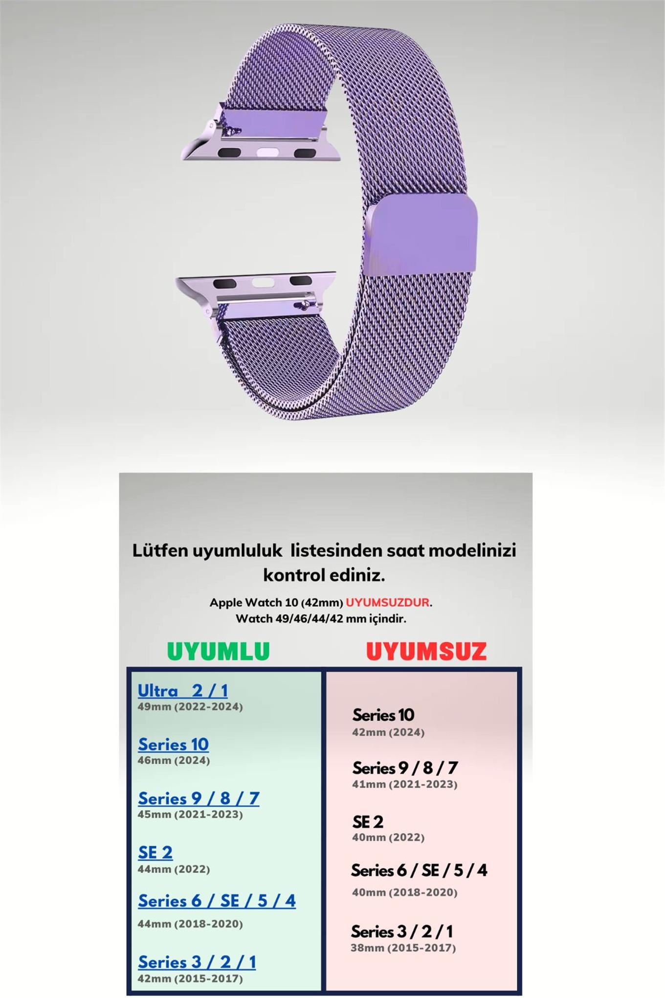 Apple Watch 49/46/45/44/42 Mm Series 10/9/8/7/6/5/4/3/se/ultra/ Paslanmaz Hasır Örgü Metal Milano 42