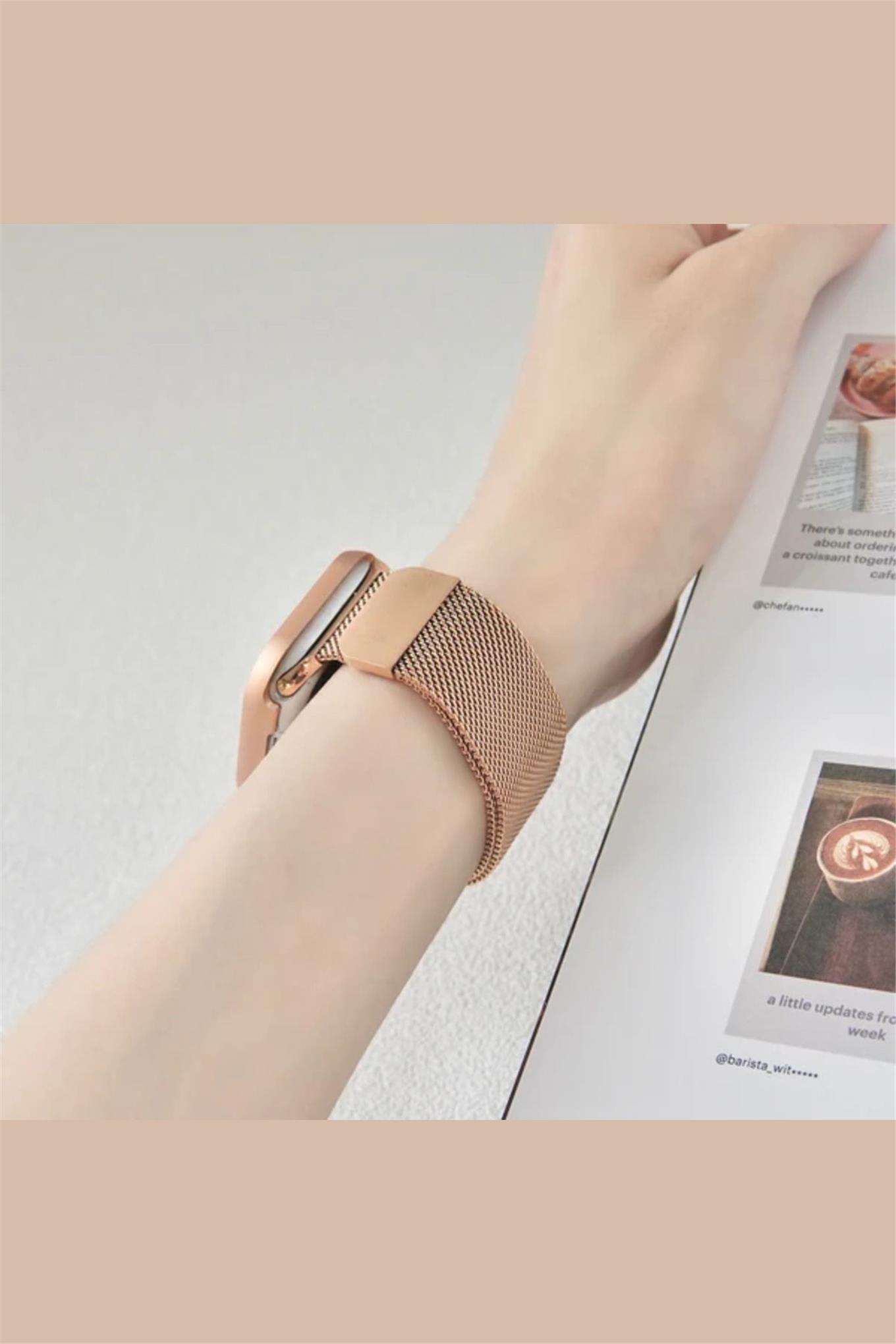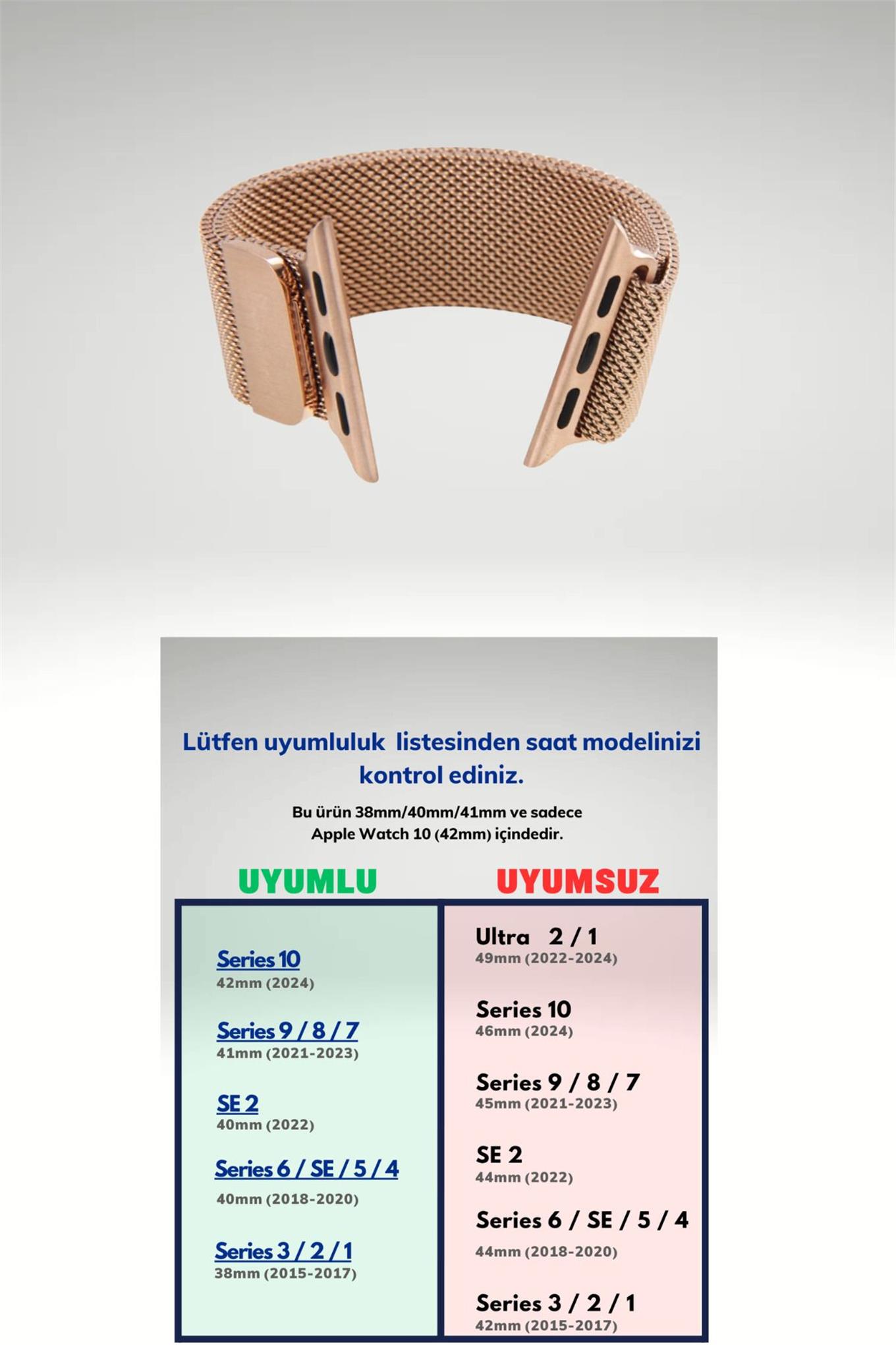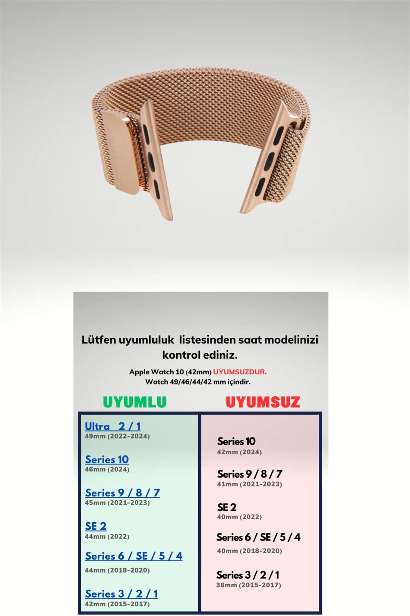 Apple Watch 49/46/45/44/42 Mm Series 10/9/8/7/6/5/4/3/se/ultra/ Paslanmaz Hasır Örgü Metal Milano 42