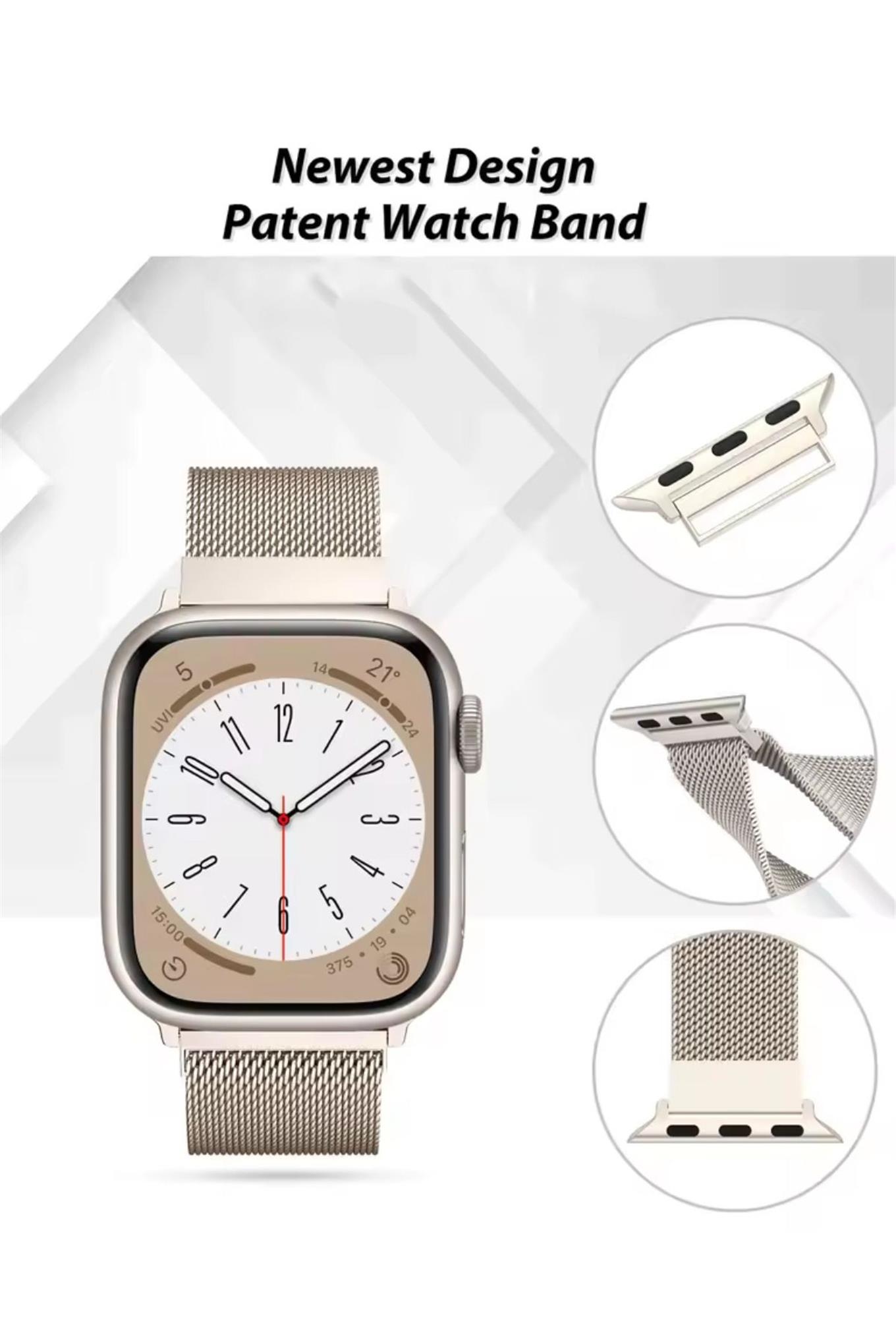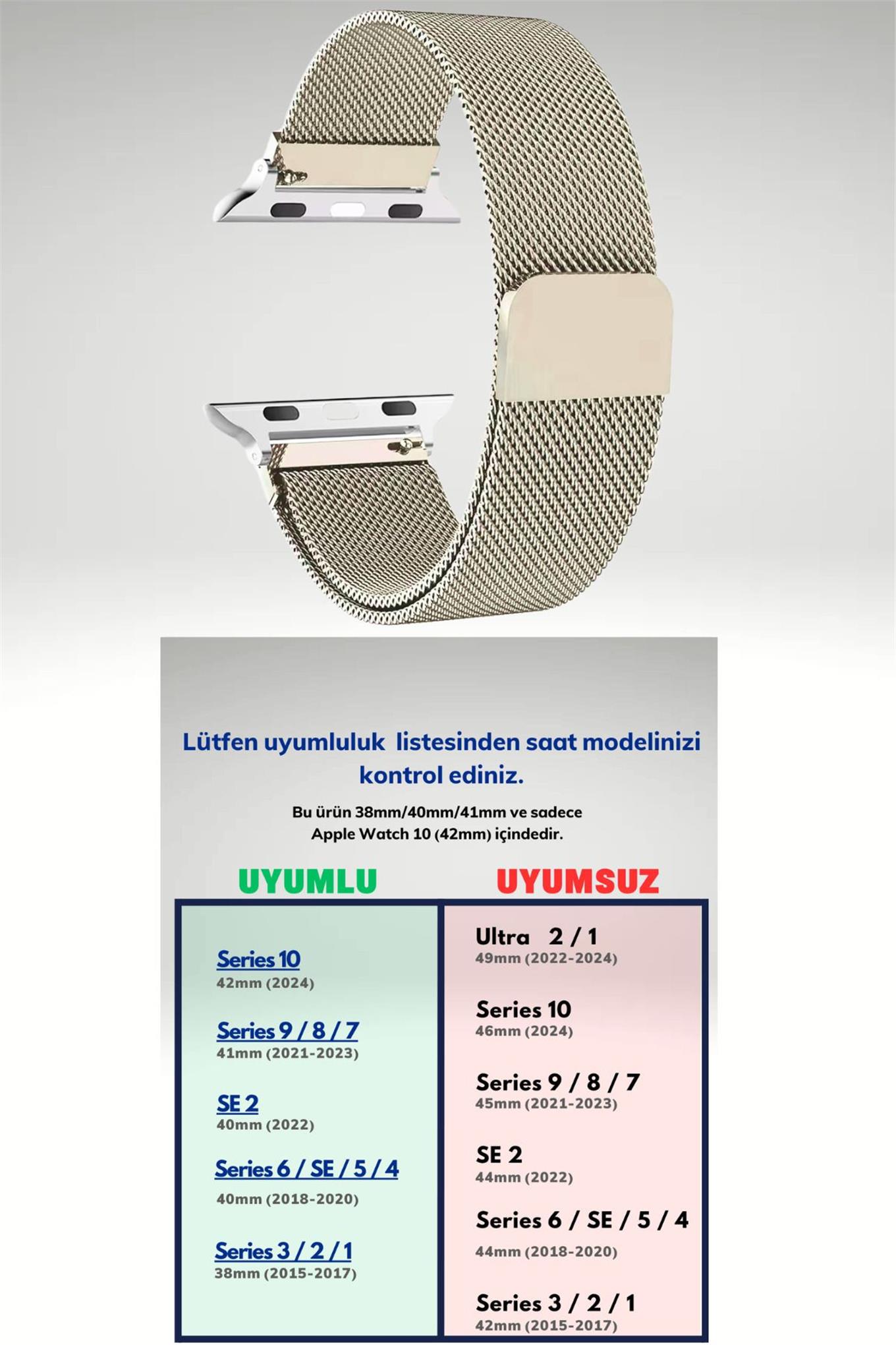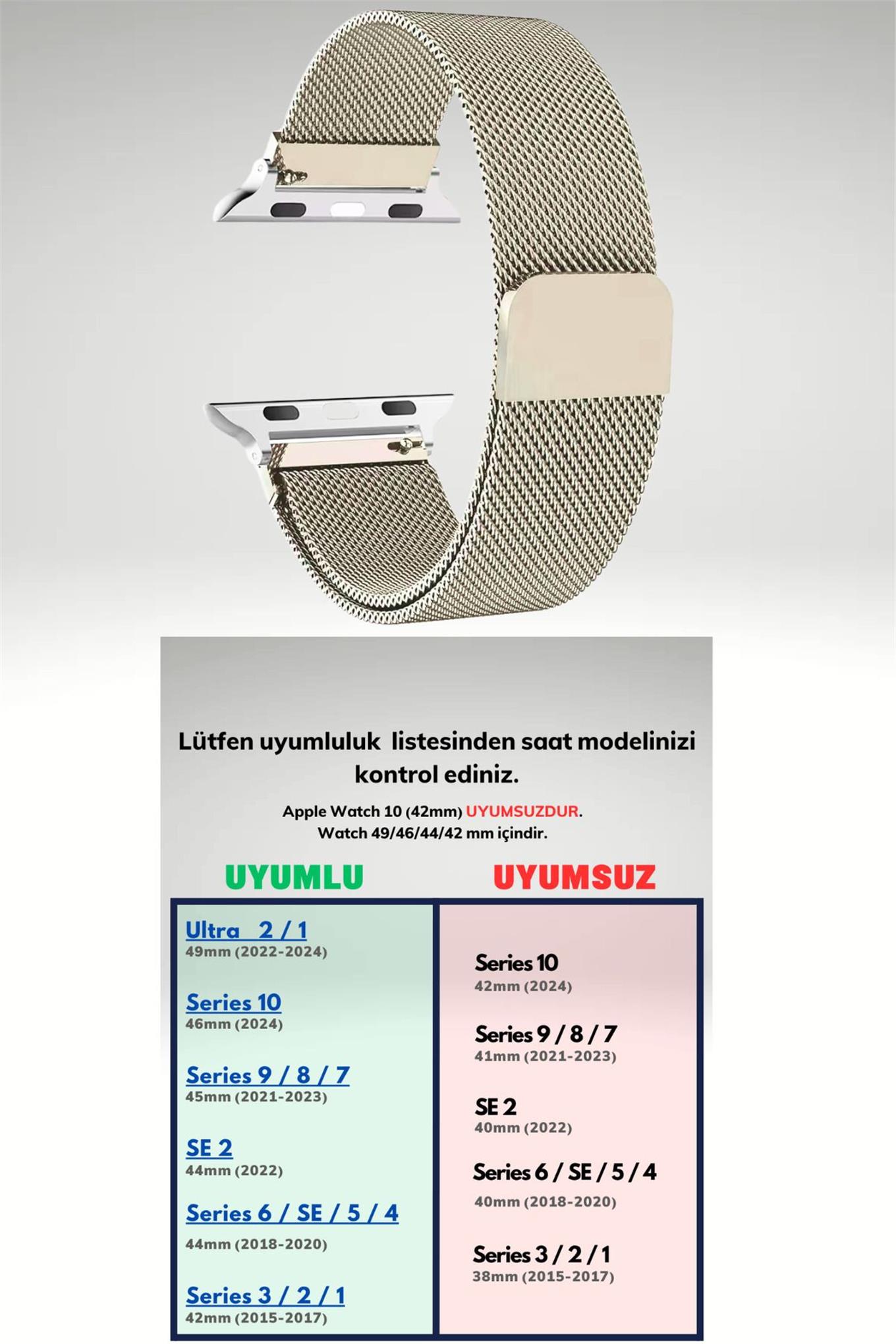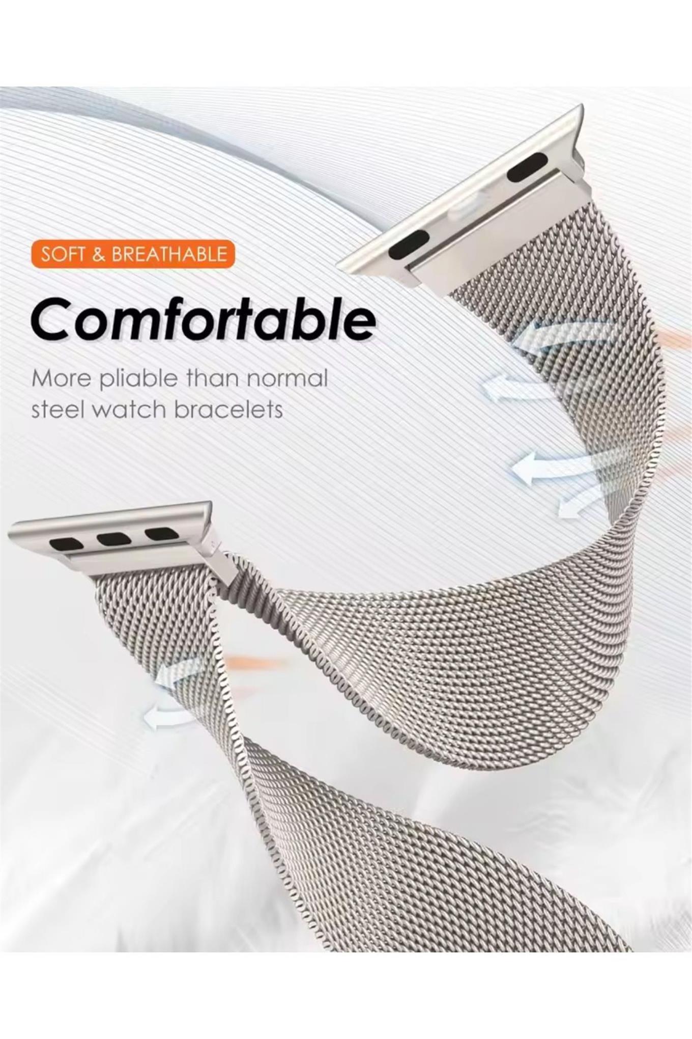 Apple Watch 49/46/45/44/42 Mm Series 10/9/8/7/6/5/4/3/se/ultra/ Paslanmaz Hasır Örgü Metal Milano 42