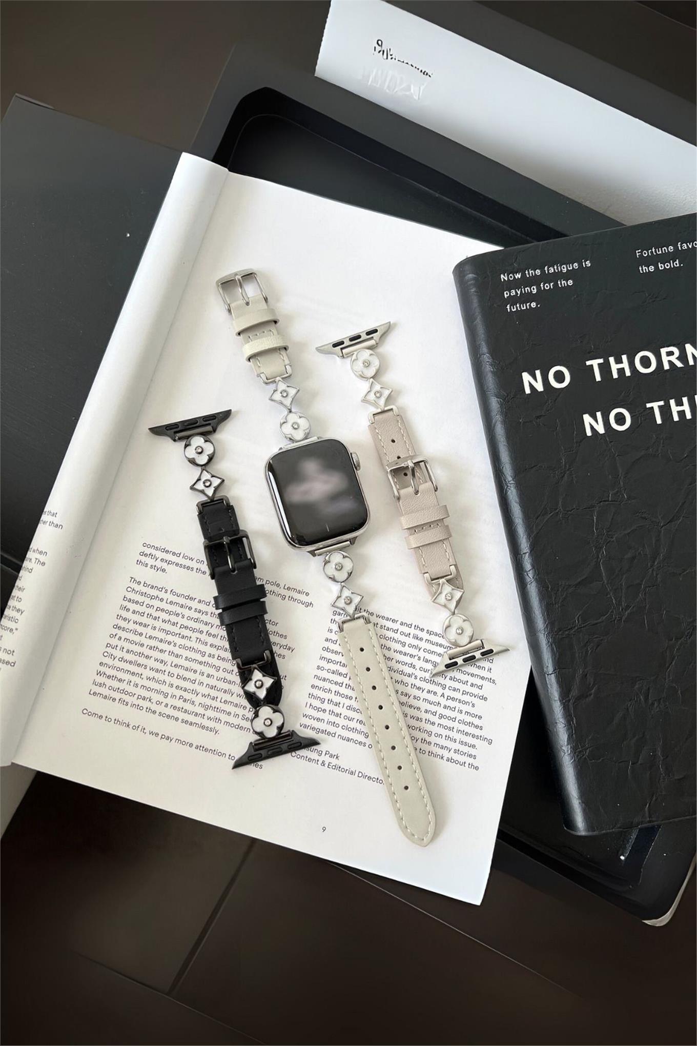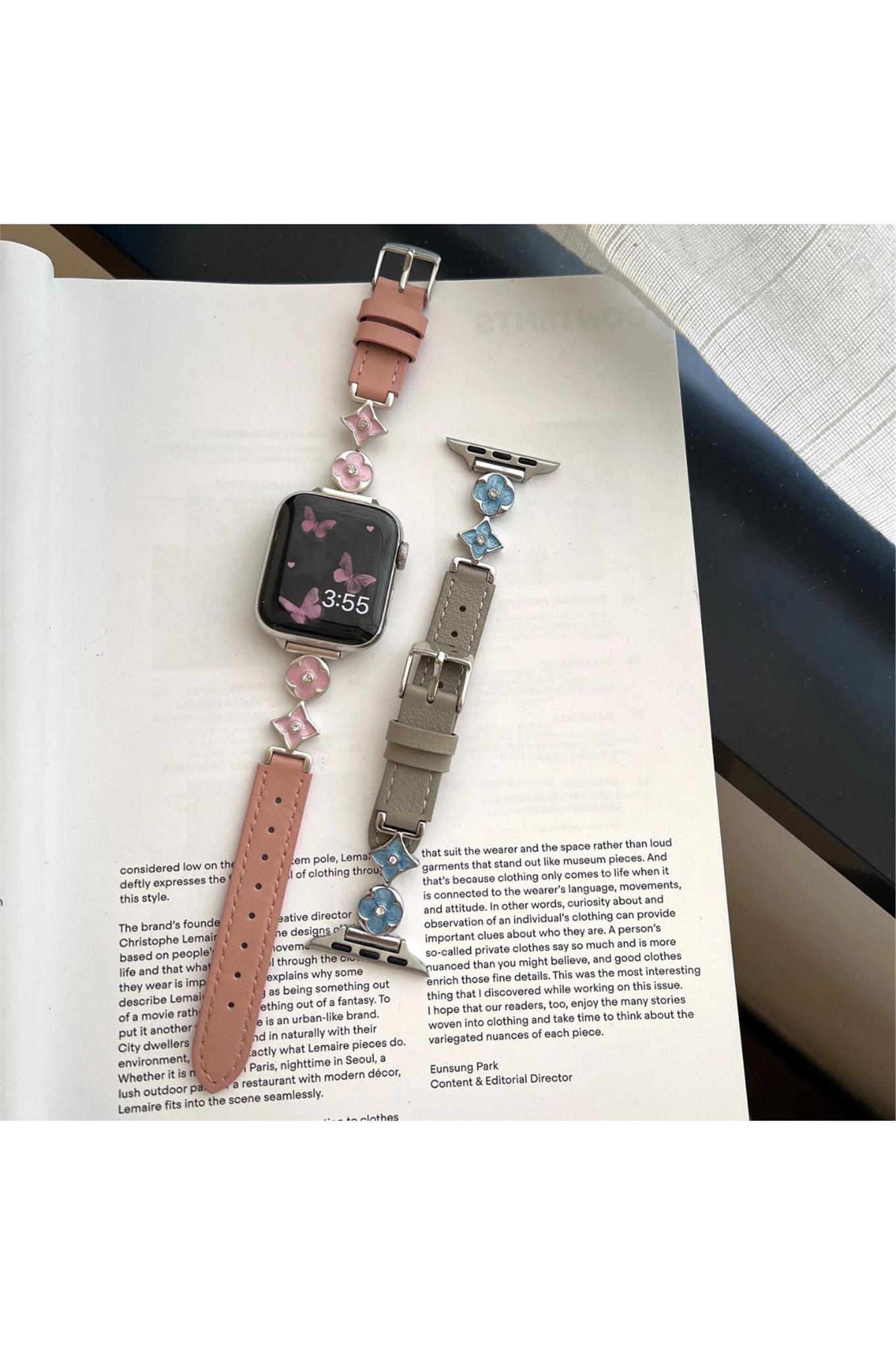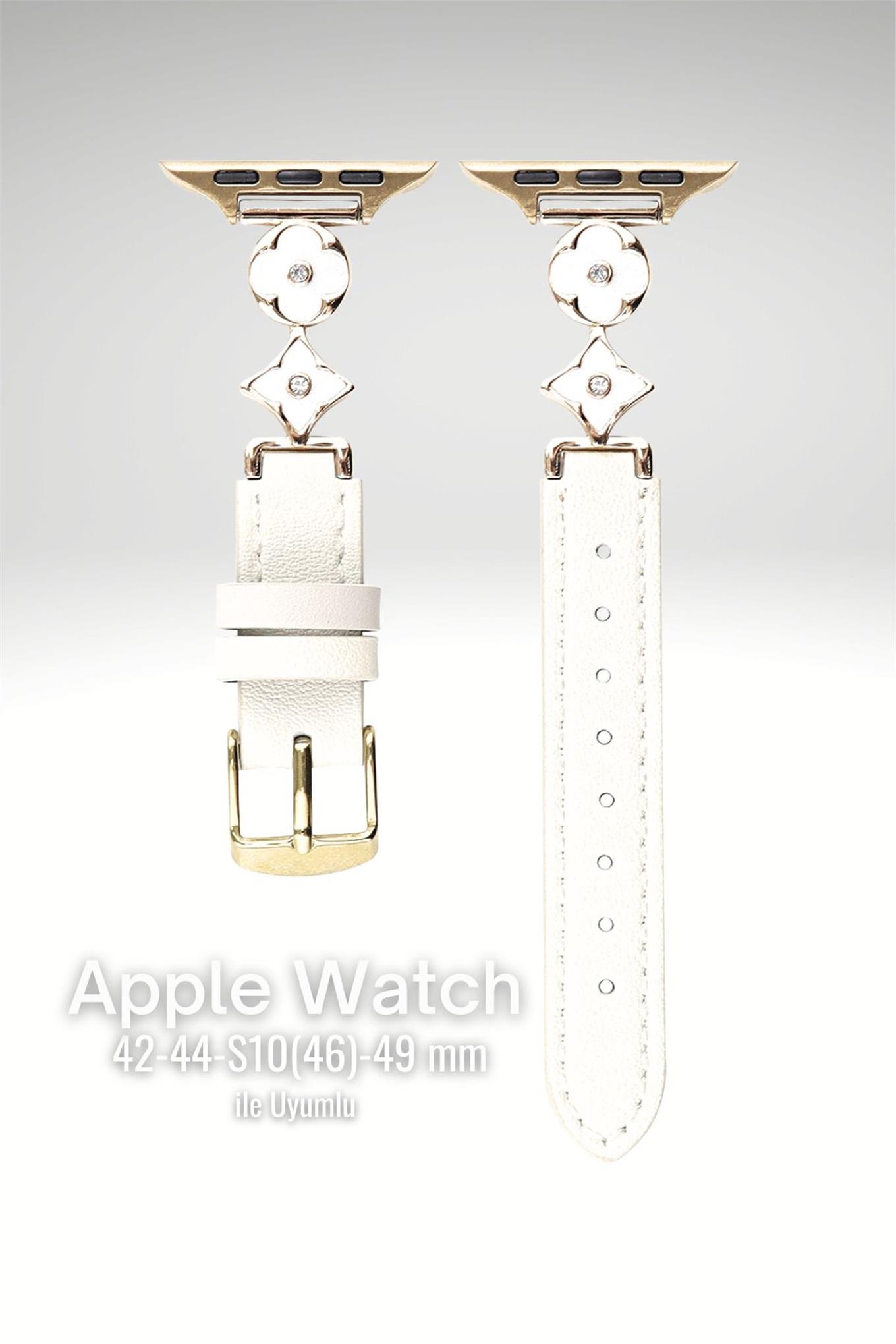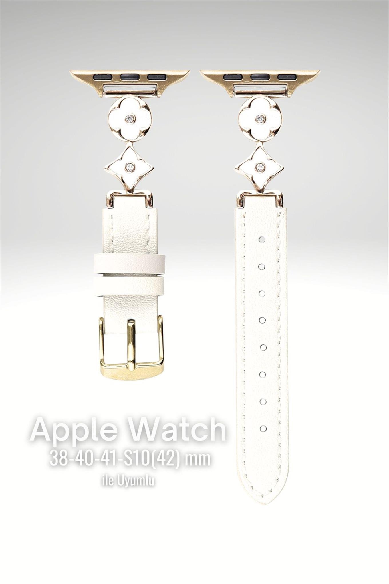 Apple Watch Seri 1-9 (38-40-41) ve S10-42mm Uyumlu Lüks Kordon Metal Derili 4Yaprak Apple Watch Seri 1-9 (38-40-41) ve S10-42mm Uyumlu Lüks Kordon Metal Derili 4Yaprak