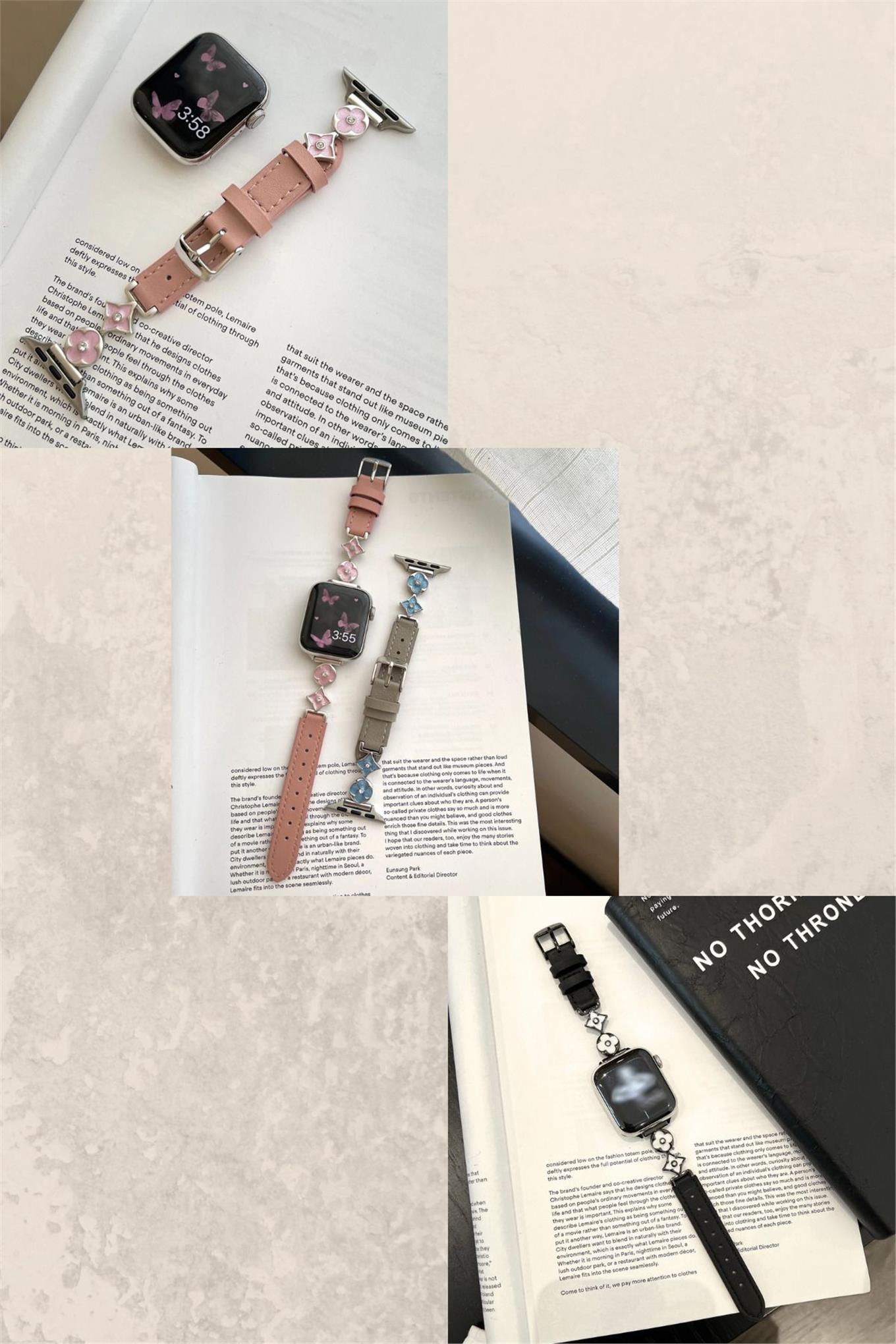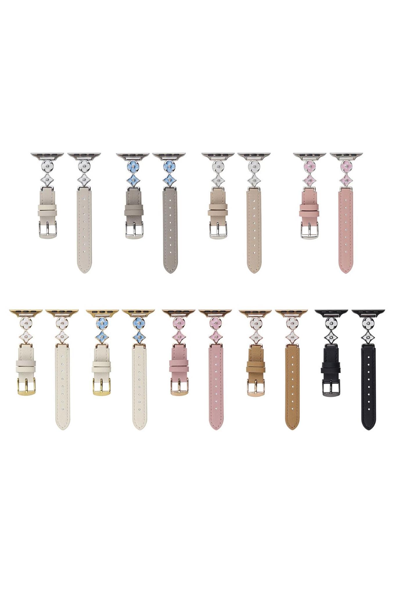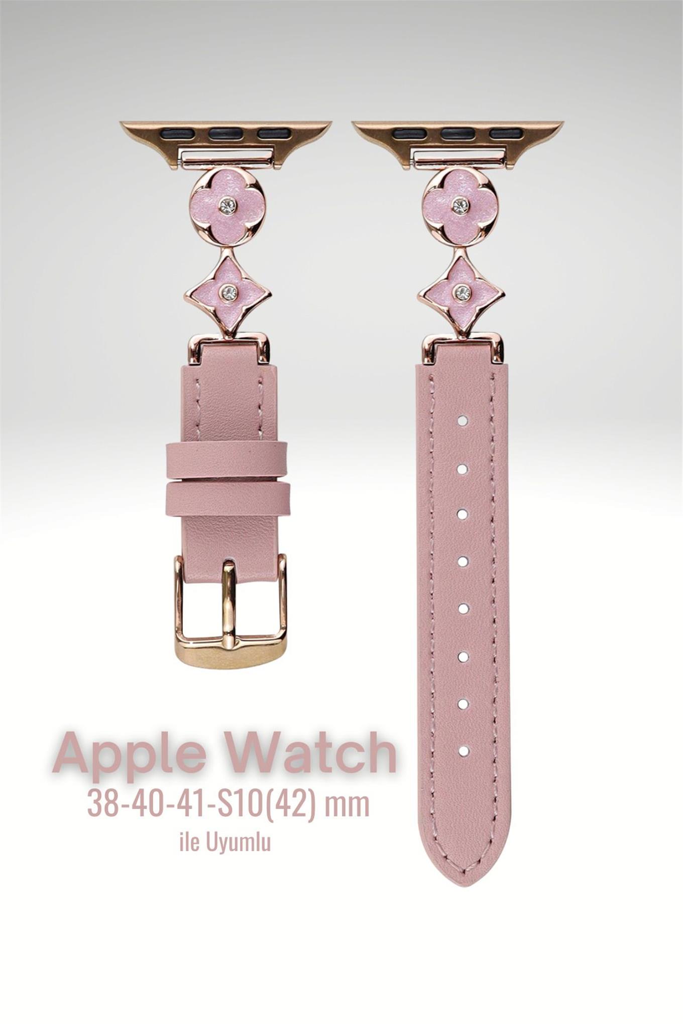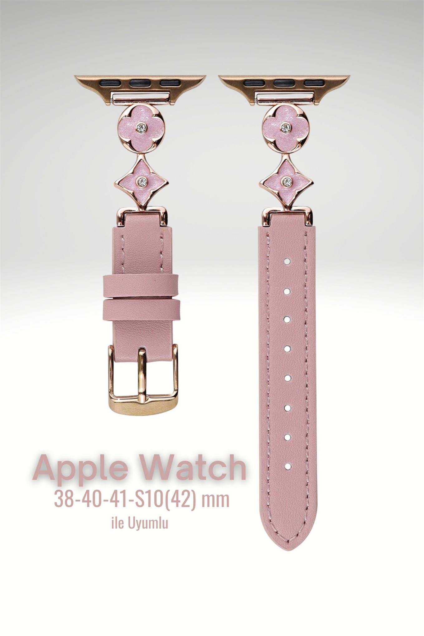 Apple Watch Seri 1-9 (38-40-41) ve S10-42mm Uyumlu Lüks Kordon Metal Derili 4Yaprak Apple Watch Seri 1-9 (38-40-41) ve S10-42mm Uyumlu Lüks Kordon Metal Derili 4Yaprak
