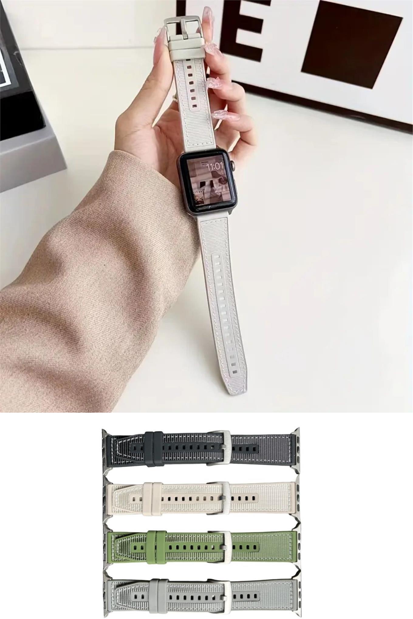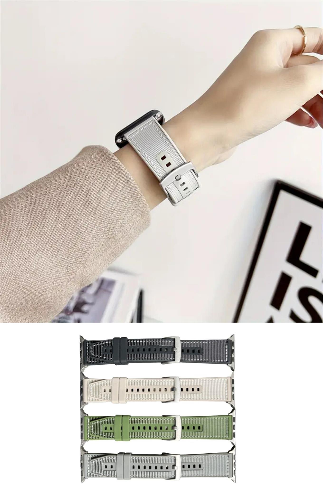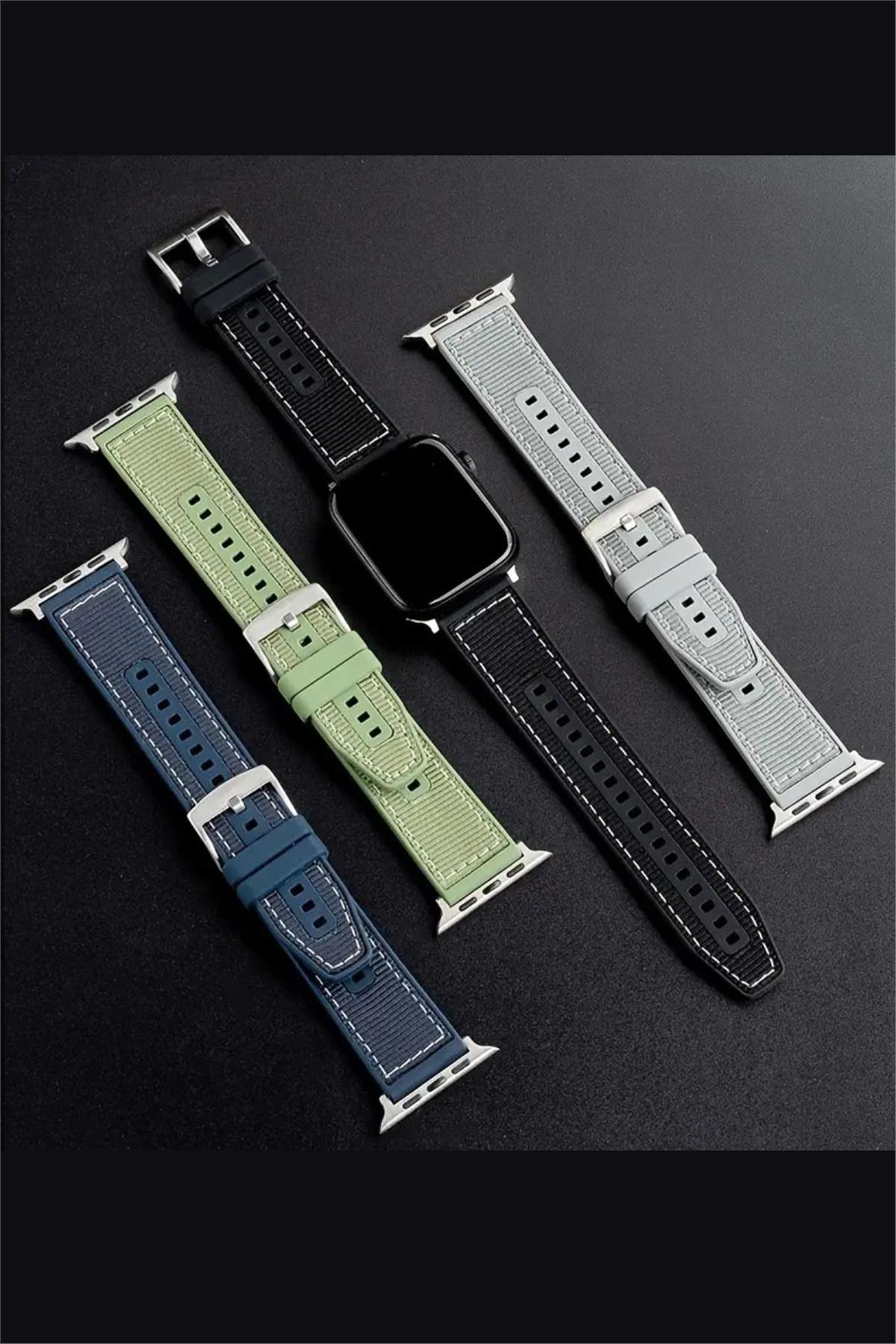 Apple Watch Uyumlu ( 2,3,4,5,6,7,8,9 44-45-49 Mm ) FİBER KUMAŞ DESENLİ SİLİKON KORDON