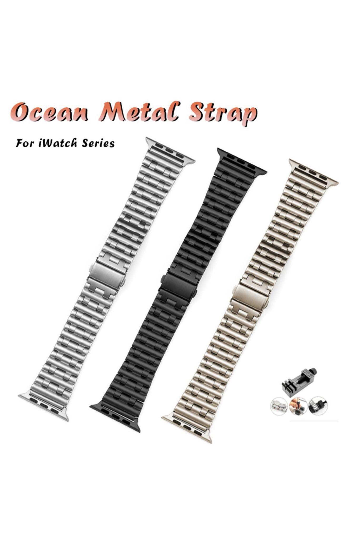 Apple Watch Uyumlu 42/ 44/45/ 49mm 1/2/3/4/5/6/se/7/8/9ultra-ultra2 Kordon Okyanus Metal Loop Kordon