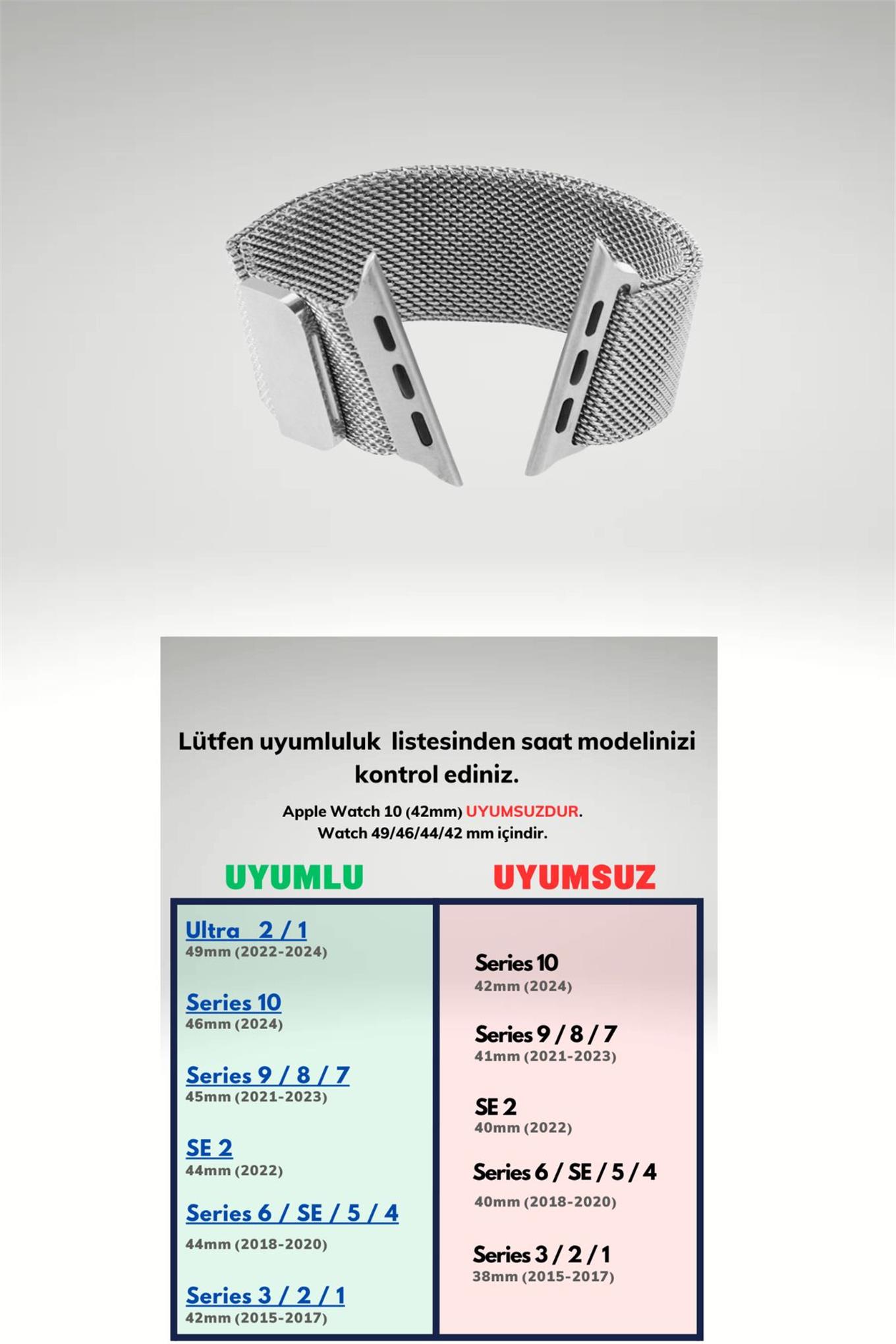 Apple Watch Uyumlu Seri 1/2/3/4/5/6/se/7/8/9 (38/40/41MM)-s10(42MM) Kordon Paslanmaz Metal Milano 38
