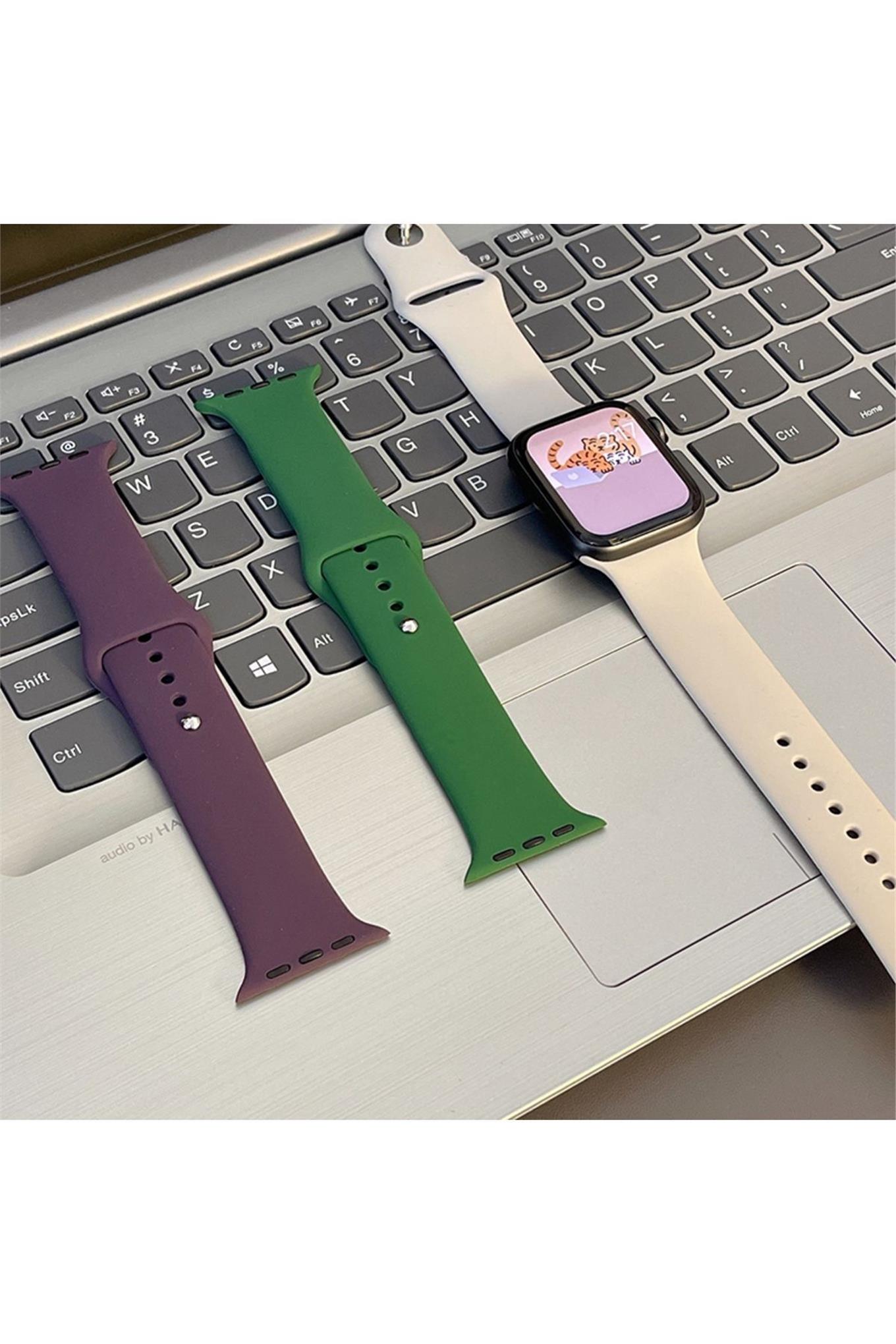Apple Watch Uyumlu Seri: 3/4/5/6/7/8/9/se 38-40-41mm Ve Seri10 (42MM) Kaliteli Spor Klasik Slikon