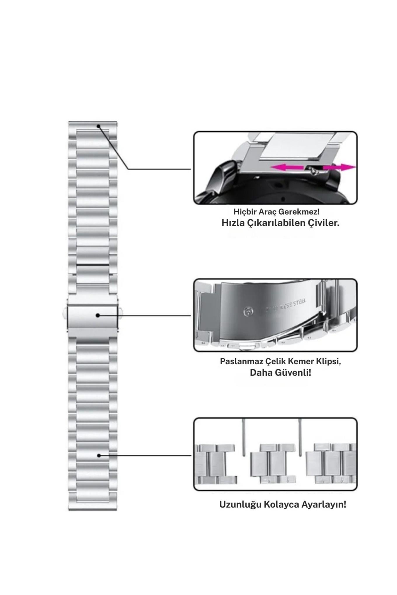 Xiaomi Redmi Watch 5 Active Ve Huawei Watch Gt3 Pro Titanyum 46mm Uyumlu Bakla Metal Kordon Kayış
